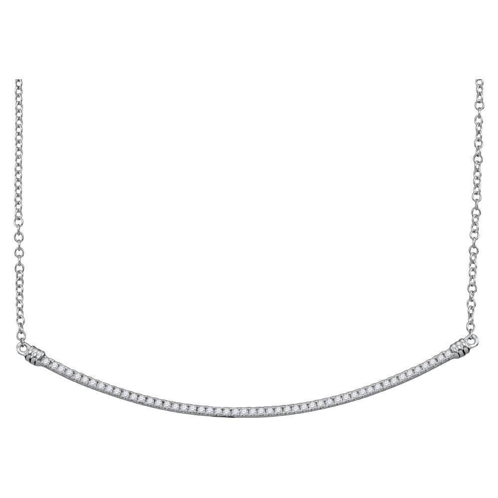10kt White Gold Womens Round Diamond Curved Slender Bar Pendant Necklace 1/4 Cttw