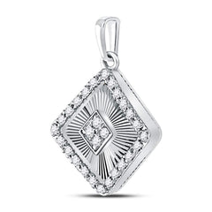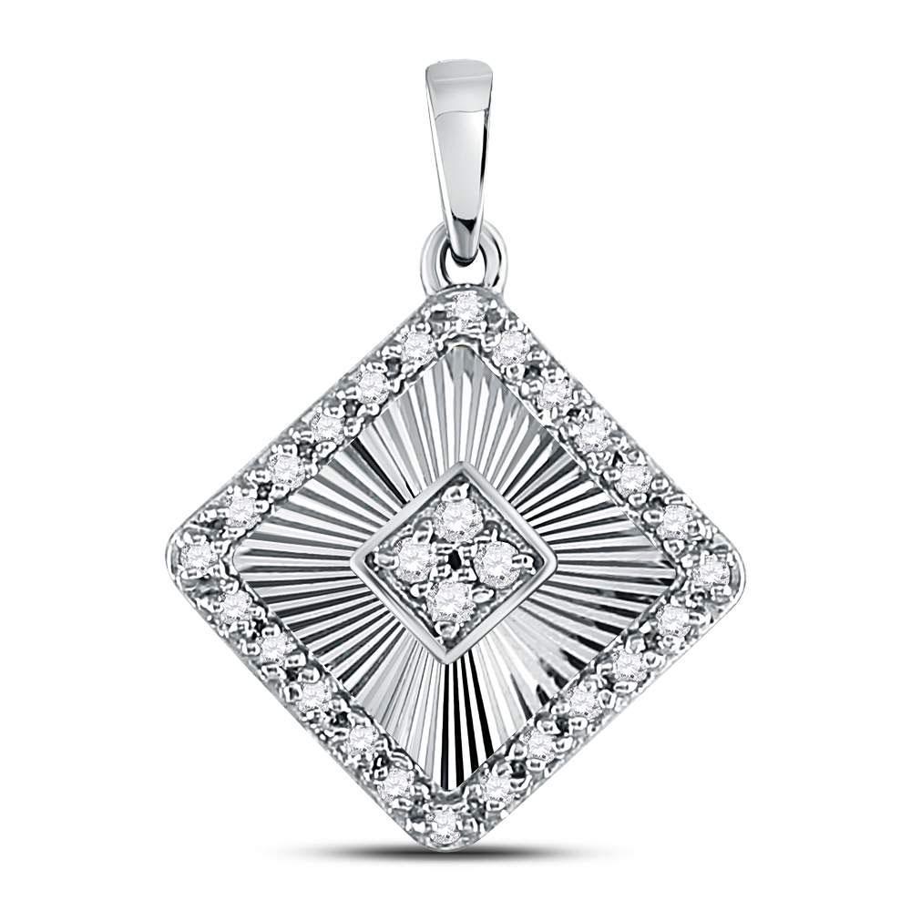 10kt White Gold Womens Round Diamond Diagonal Square Pendant 1/6 Cttw