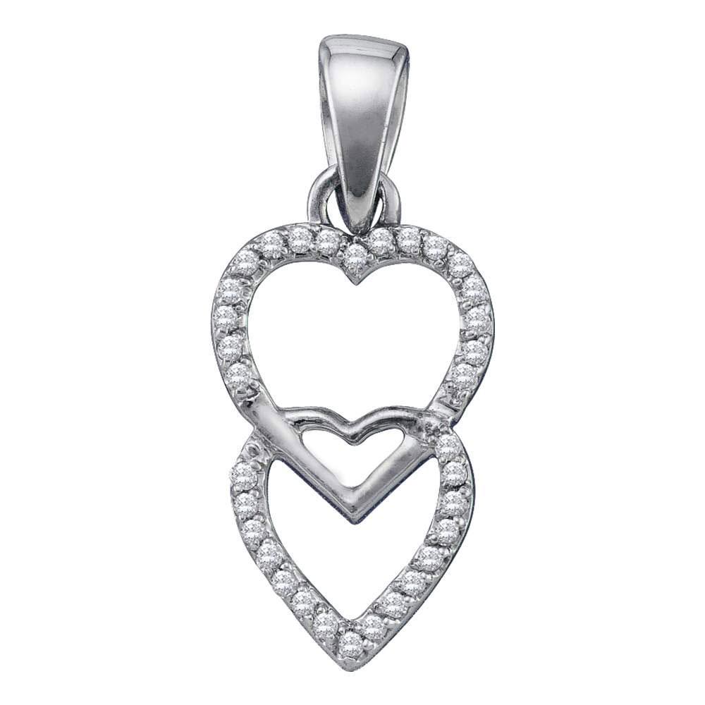 10kt White Gold Womens Round Diamond Double Hanging Heart Pendant 1/10 Cttw