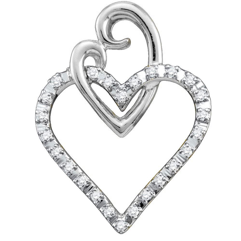 10kt White Gold Womens Round Diamond Double Joined Heart Pendant 1/12 Cttw