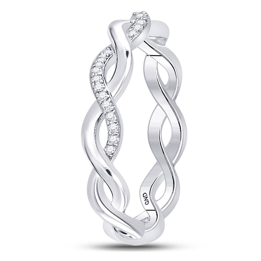 10kt White Gold Womens Round Diamond Fashion Braid Band Ring 1/10 Cttw
