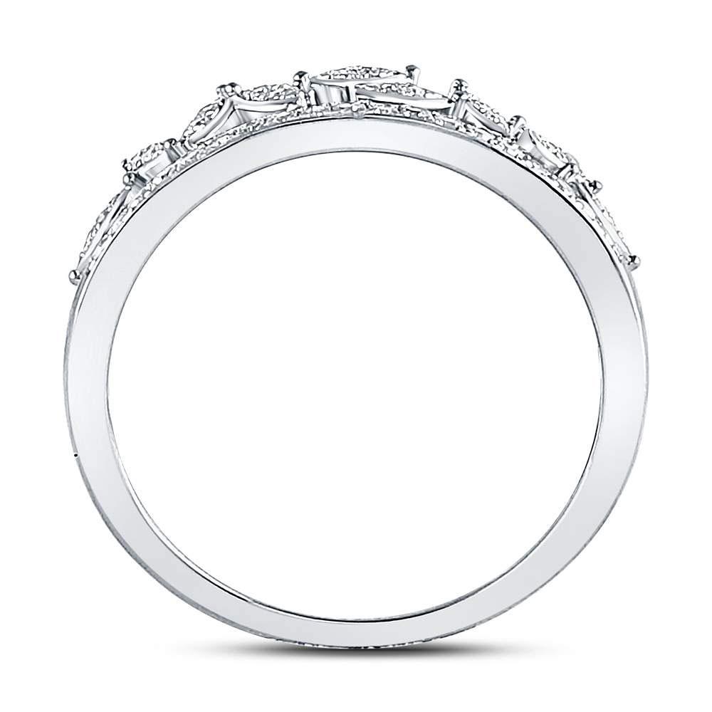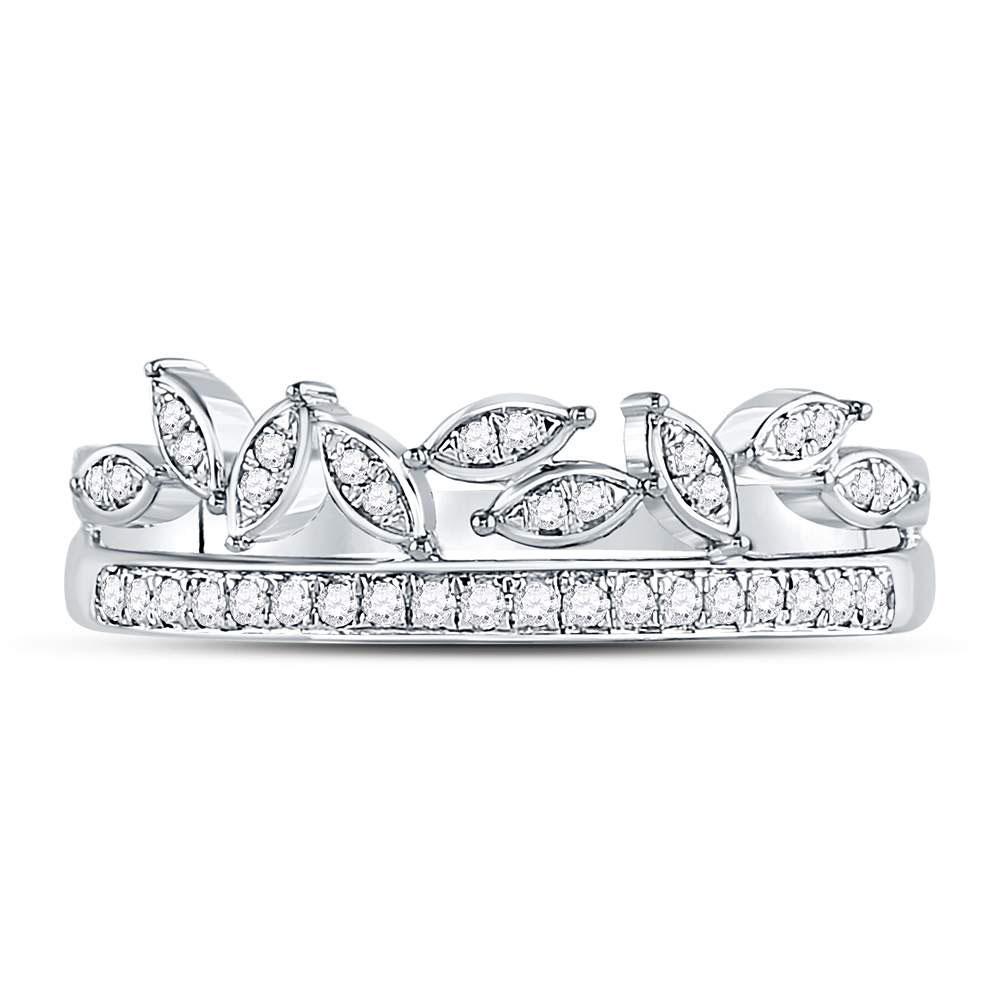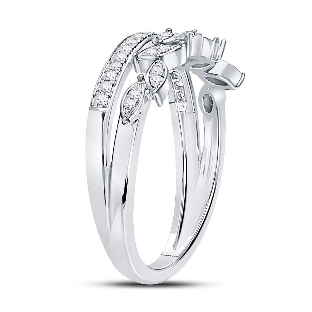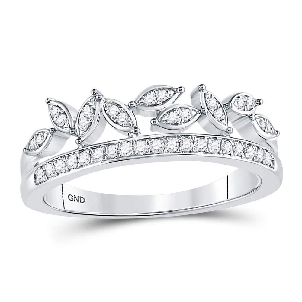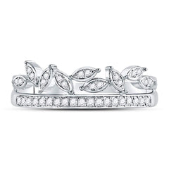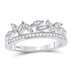 10kt White Gold Womens Round Diamond Floral Leaf Fashion Band Ring 1/6 Cttw