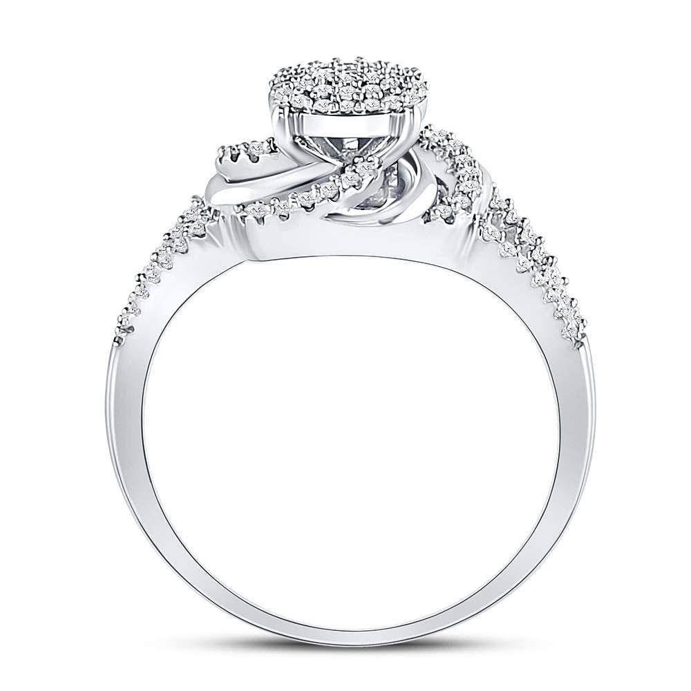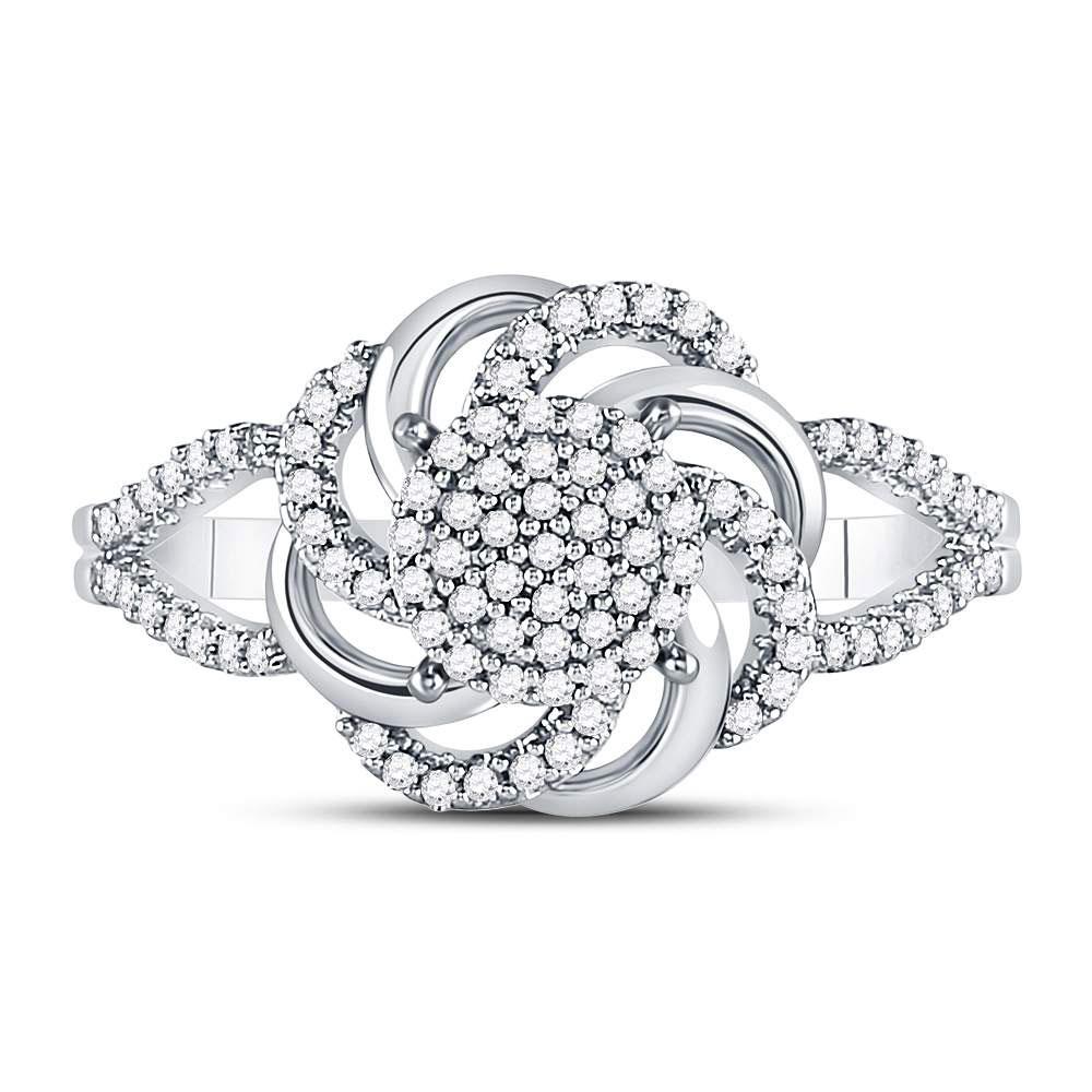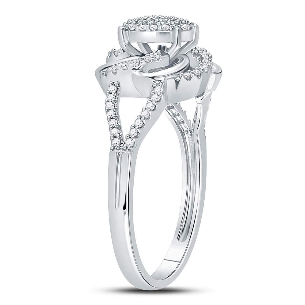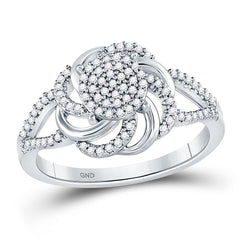 10kt White Gold Womens Round Diamond Flower Petals Cluster Ring 1/4 Cttw