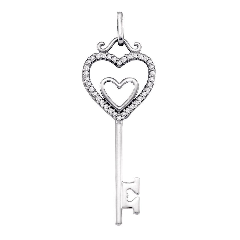 10kt White Gold Womens Round Diamond Heart Key Pendant 1/10 Cttw