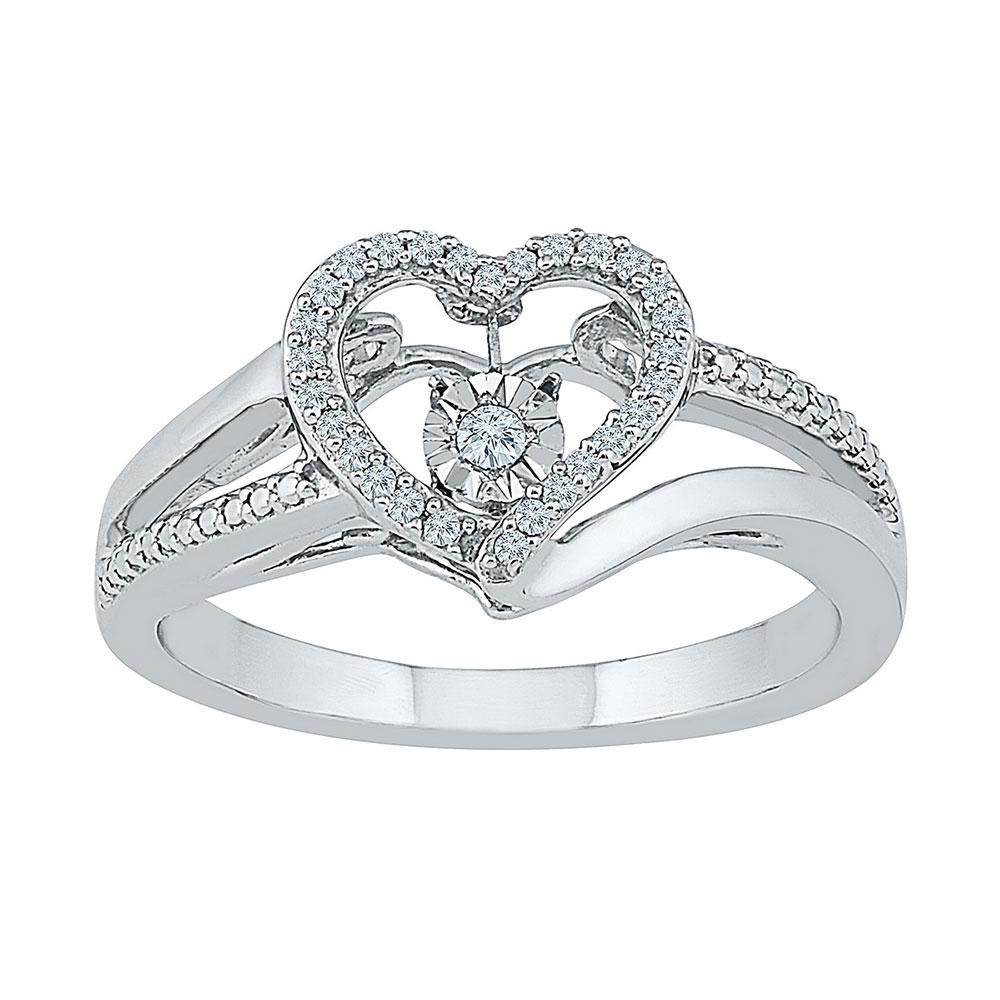 10kt White Gold Womens Round Diamond Heart Moving Twinkle Ring 1/10 Cttw