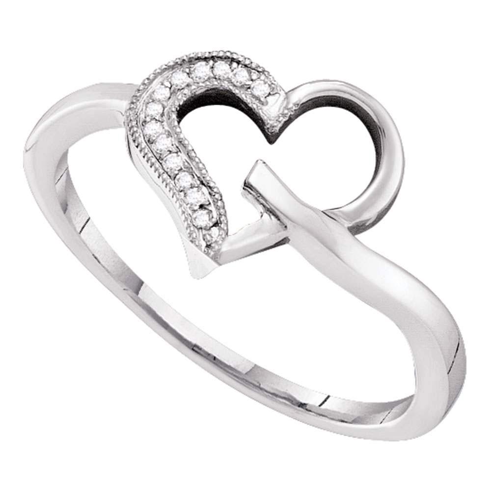 10kt White Gold Womens Round Diamond Heart Outline Ring 1/20 Cttw