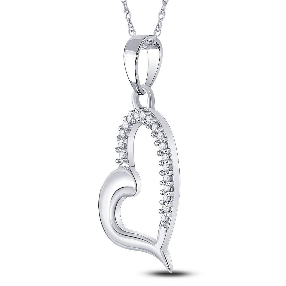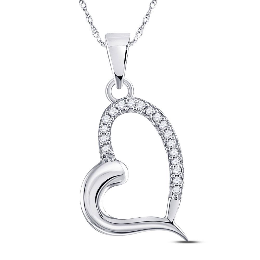 10kt White Gold Womens Round Diamond Heart Pendant 1/20 Cttw