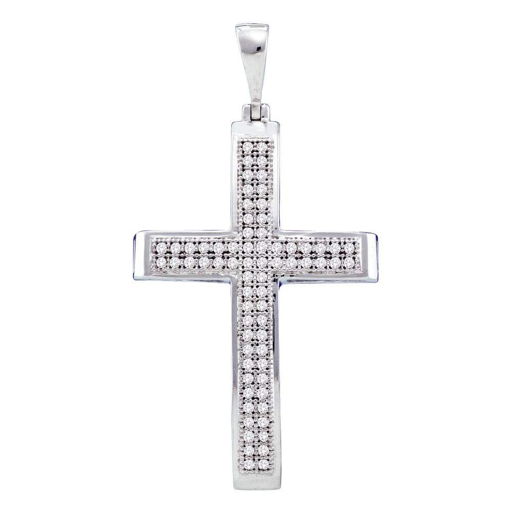 10kt White Gold Womens Round Diamond Medium Cross Pendant 1/5 Cttw