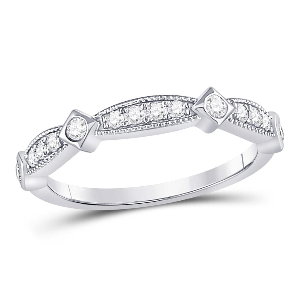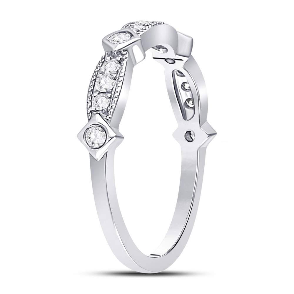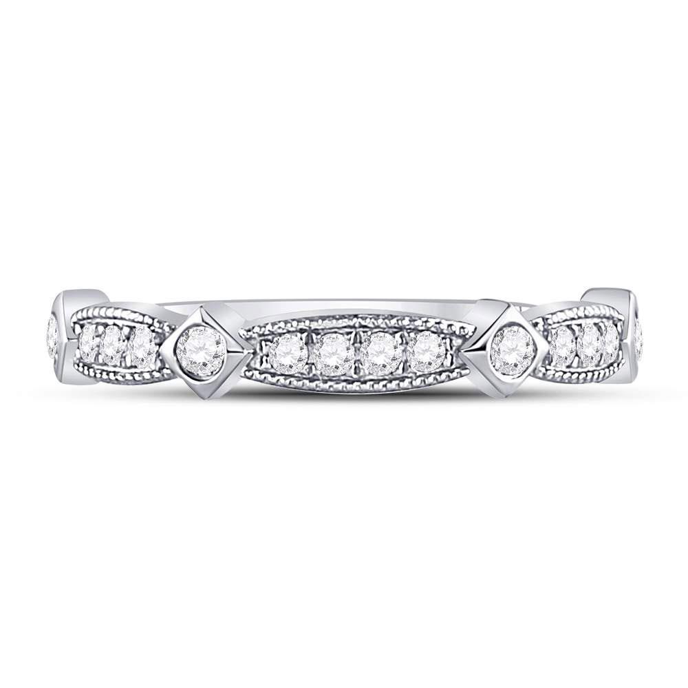 10kt White Gold Womens Round Diamond Milgrain Pinched Band Ring 1/4 Cttw