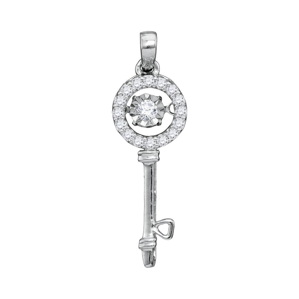 10kt White Gold Womens Round Diamond Moving Twinkle Solitaire Key Pendant 1/6 Cttw