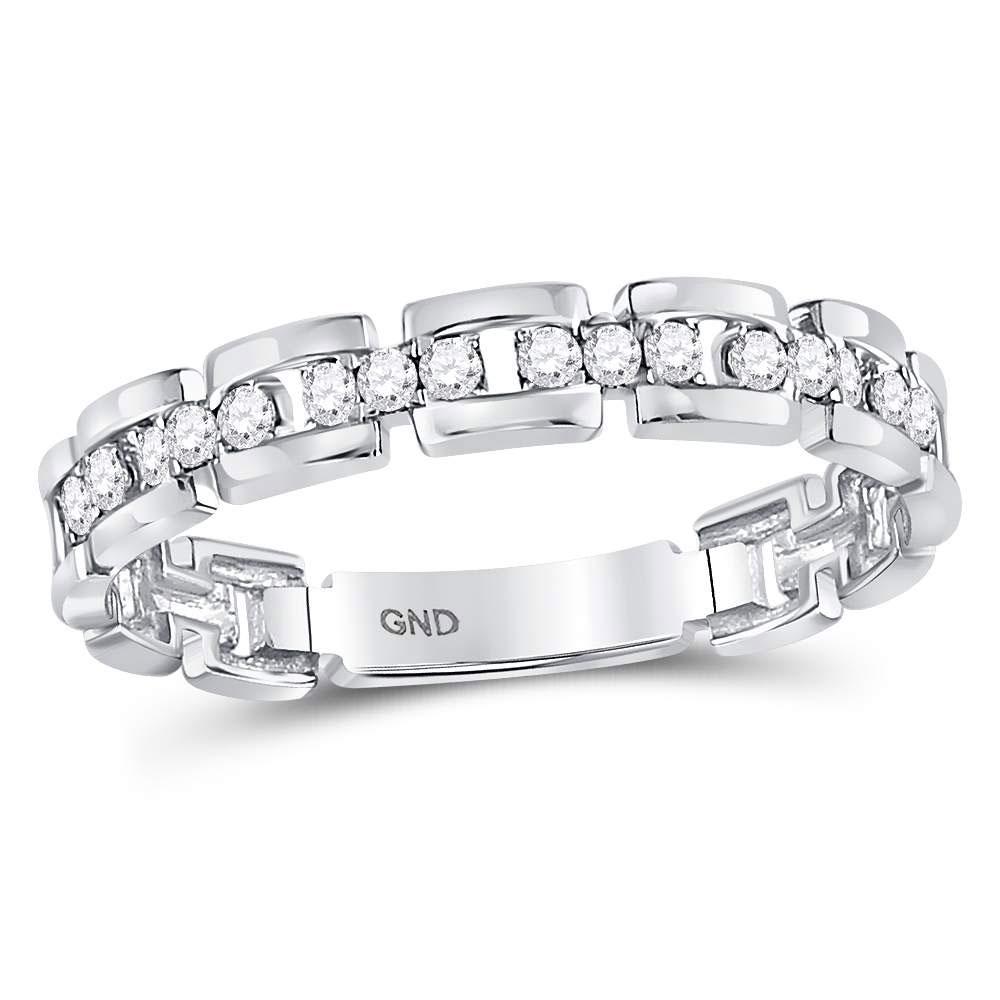 10kt White Gold Womens Round Diamond Rolo Link Stackable Band Ring 1/5 Cttw