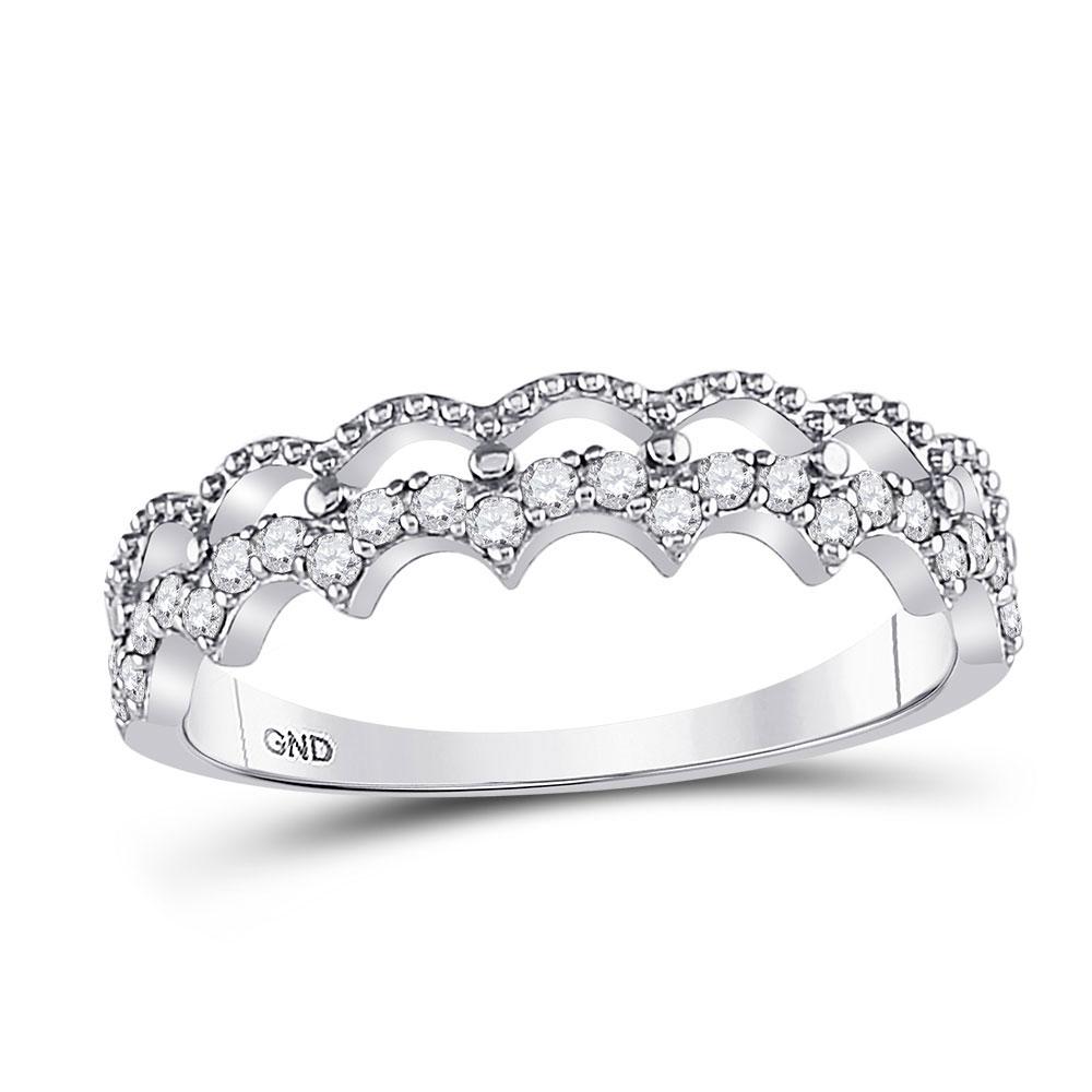 10kt White Gold Womens Round Diamond Scalloped Stackable Band Ring 1/4 Cttw