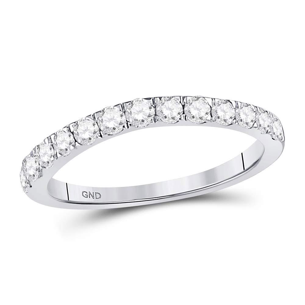 10kt White Gold Womens Round Diamond Single Row Band Ring 1/2 Cttw