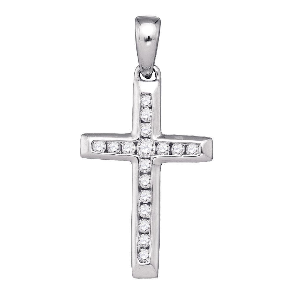 10kt White Gold Womens Round Diamond Small Cross Pendant 1/8 Cttw