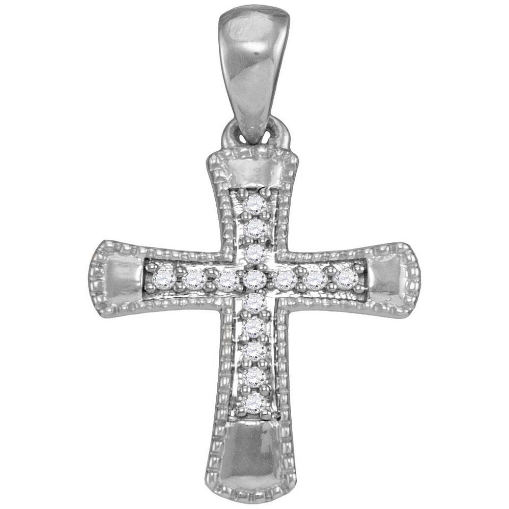 10kt White Gold Womens Round Diamond Small Flared Cross Pendant 1/10 Cttw