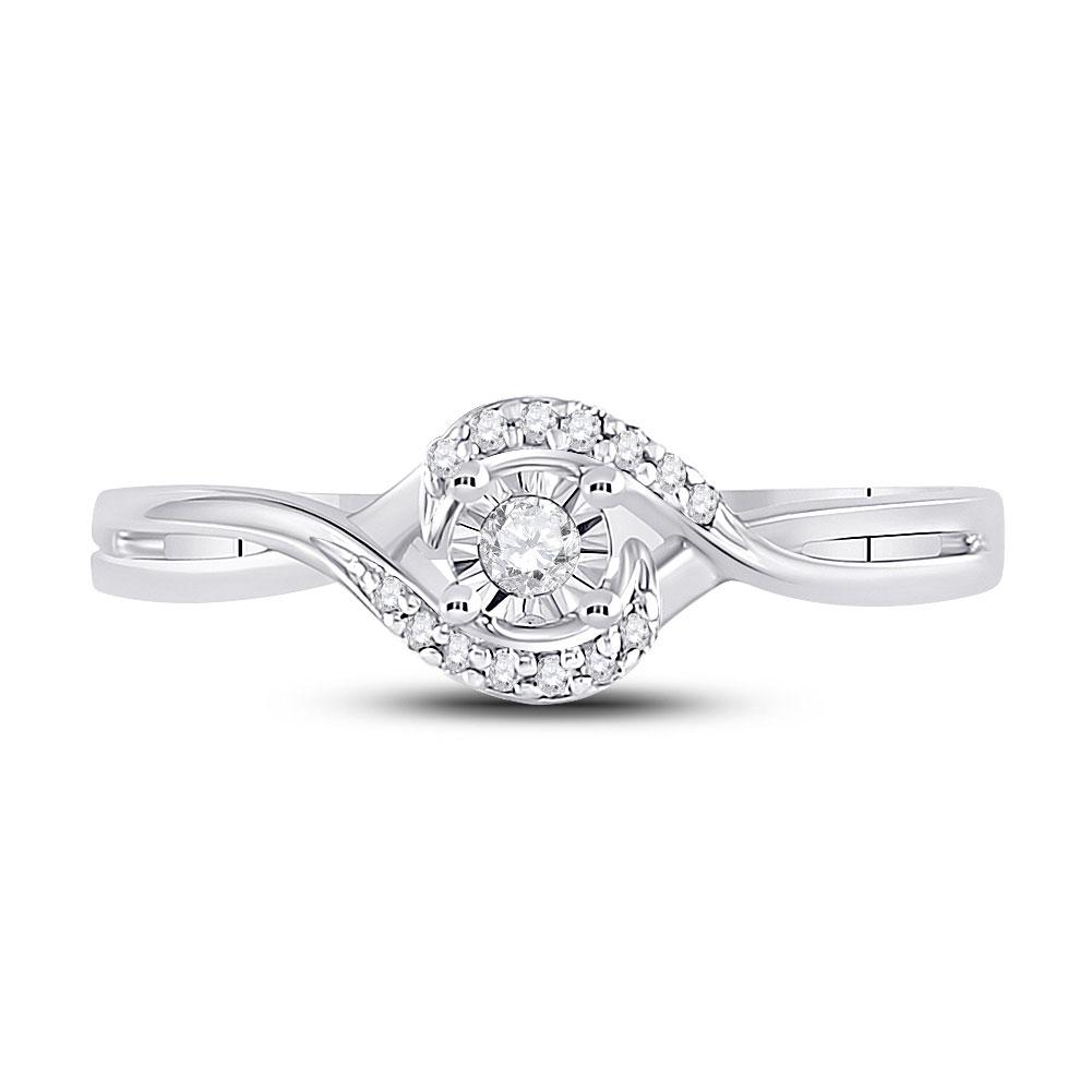 10kt White Gold Womens Round Diamond Solitaire Promise Ring 1/10 Cttw