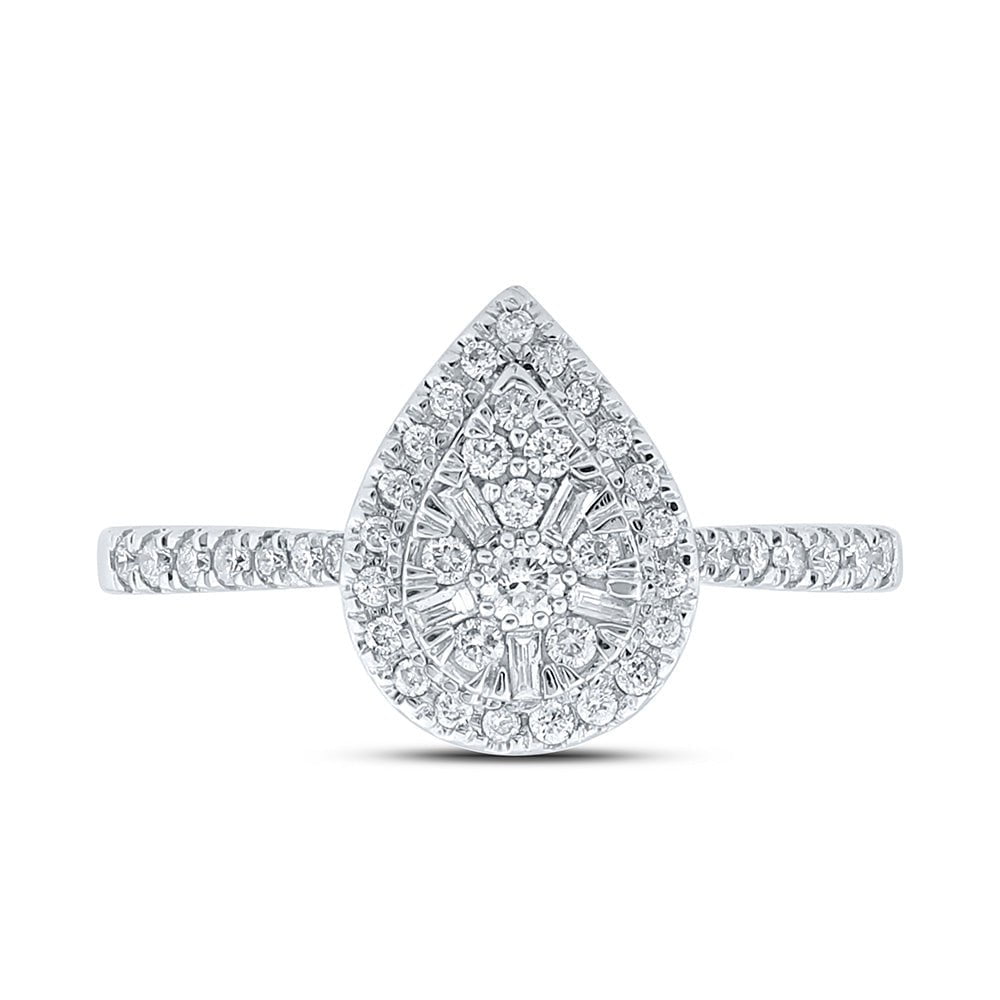 10kt White Gold Womens Round Diamond Teardrop Ring 1/3 Cttw