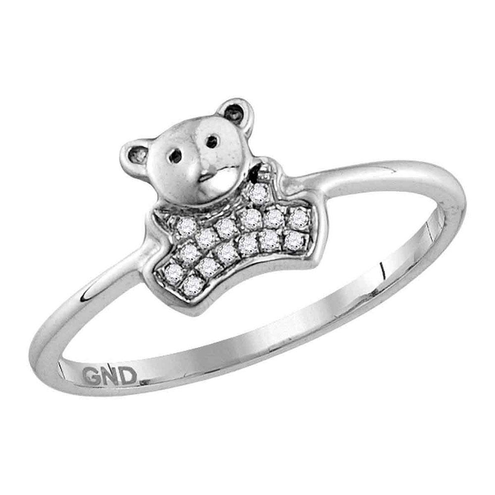 10kt White Gold Womens Round Diamond Teddy Bear Cluster Ring 1/20 Cttw