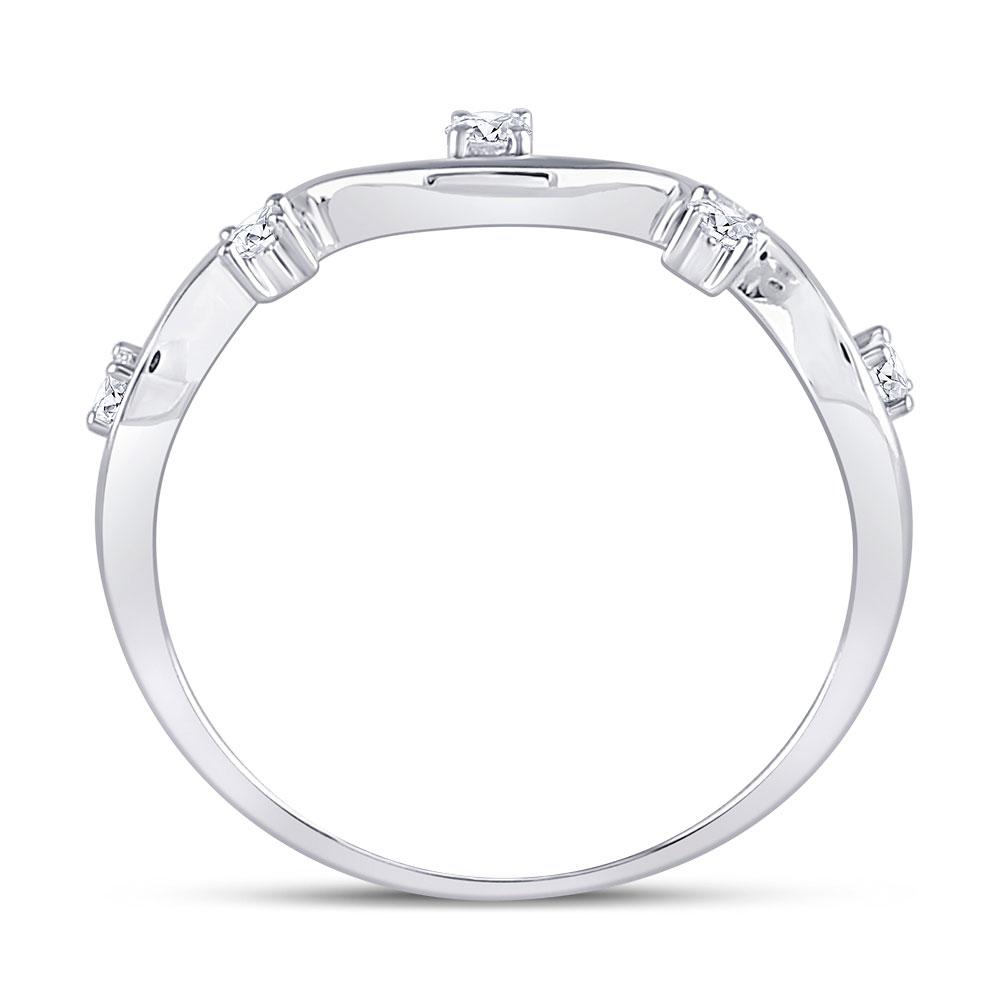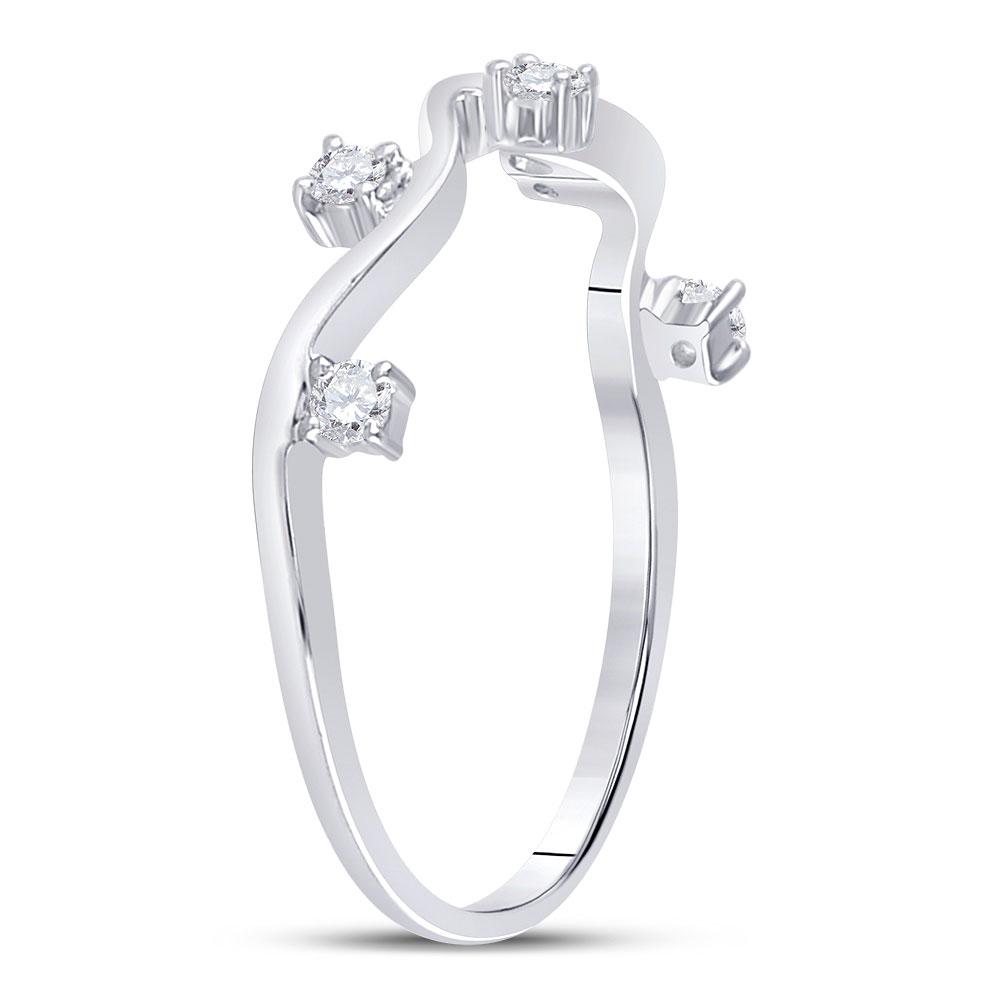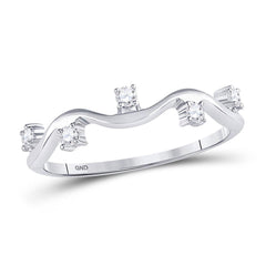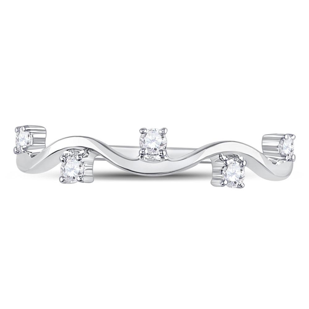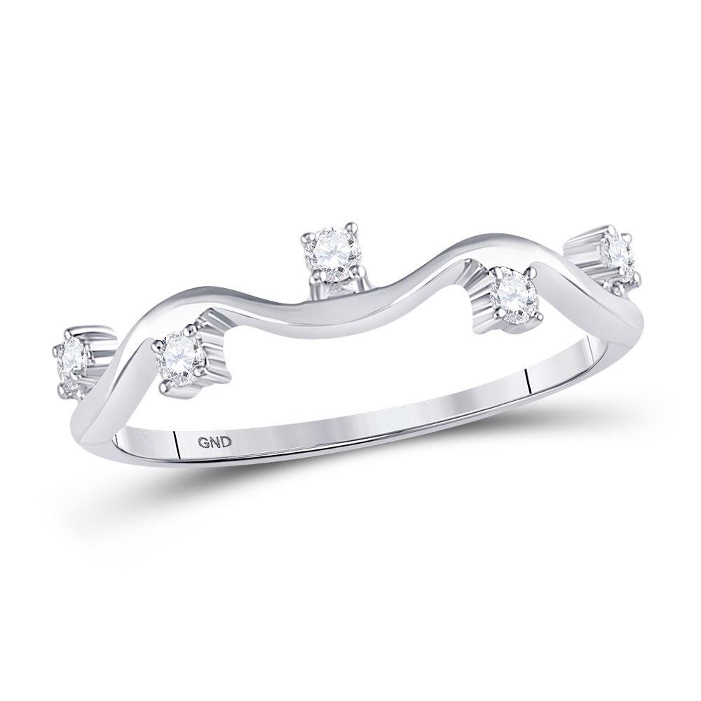 10kt White Gold Womens Round Diamond Wave Stackable Band Ring 1/8 Cttw