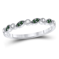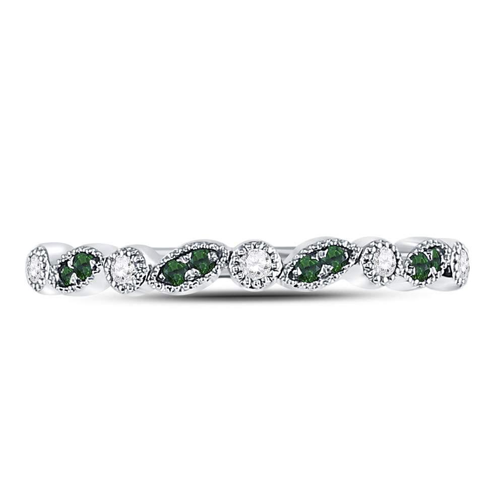 10kt White Gold Womens Round Emerald Diamond Milgrain Stackable Band Ring 1/10 Cttw