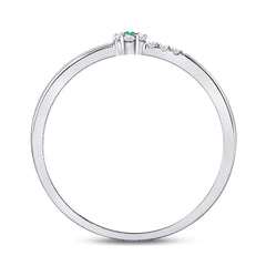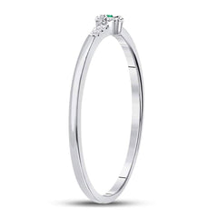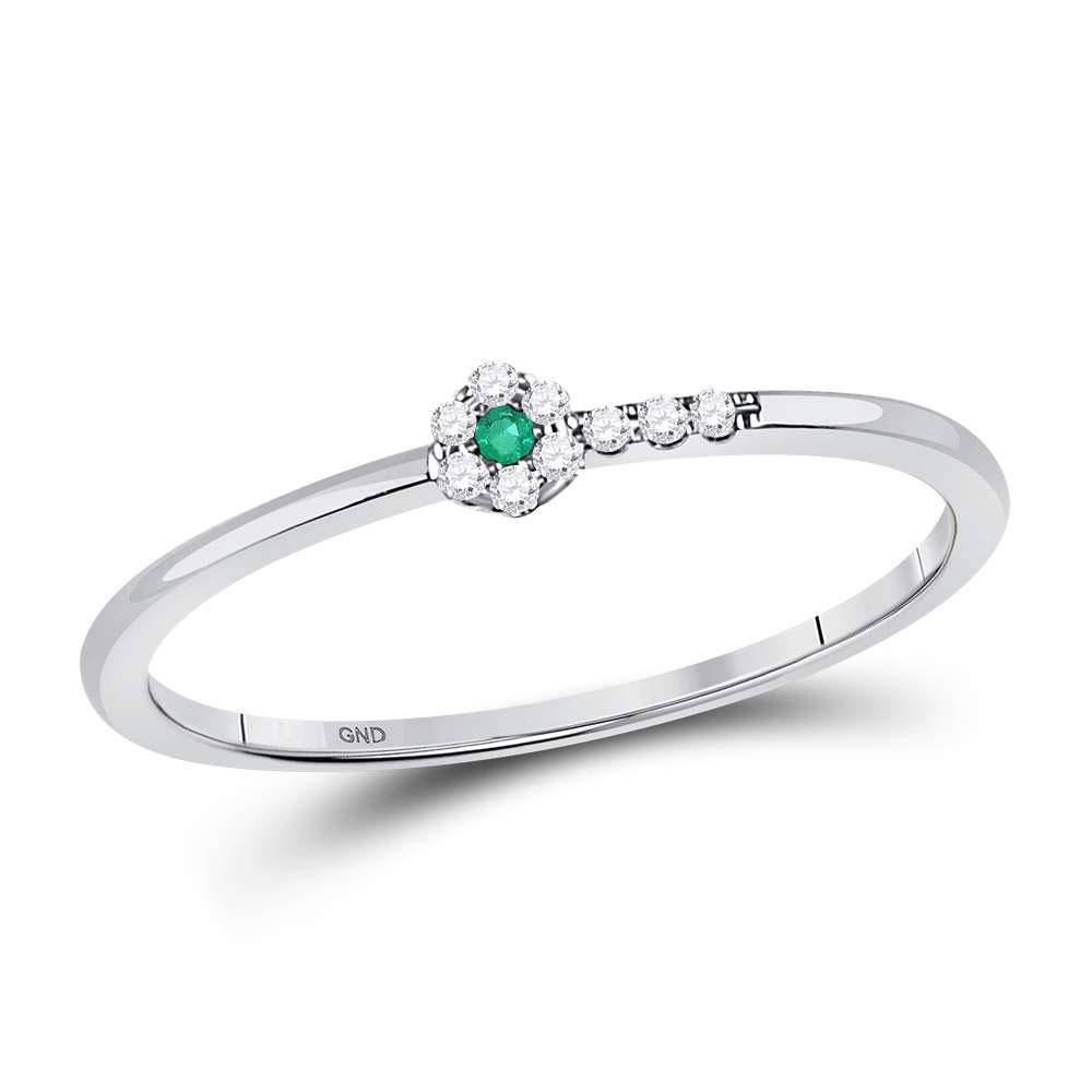 10kt White Gold Womens Round Emerald Diamond Stackable Band Ring 1/20 Cttw