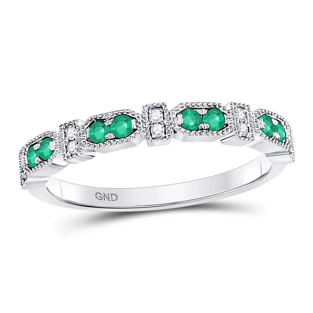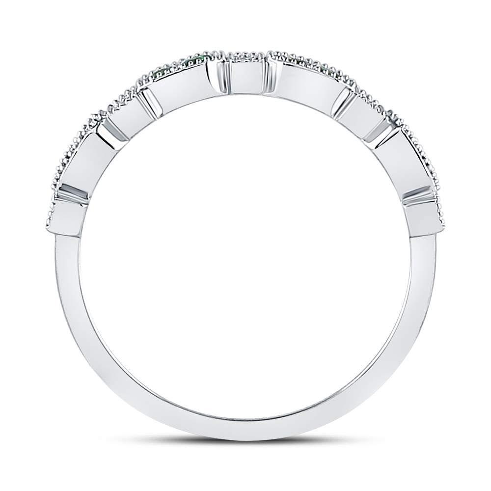 10kt White Gold Womens Round Emerald Diamond Stackable Band Ring 1/4 Cttw