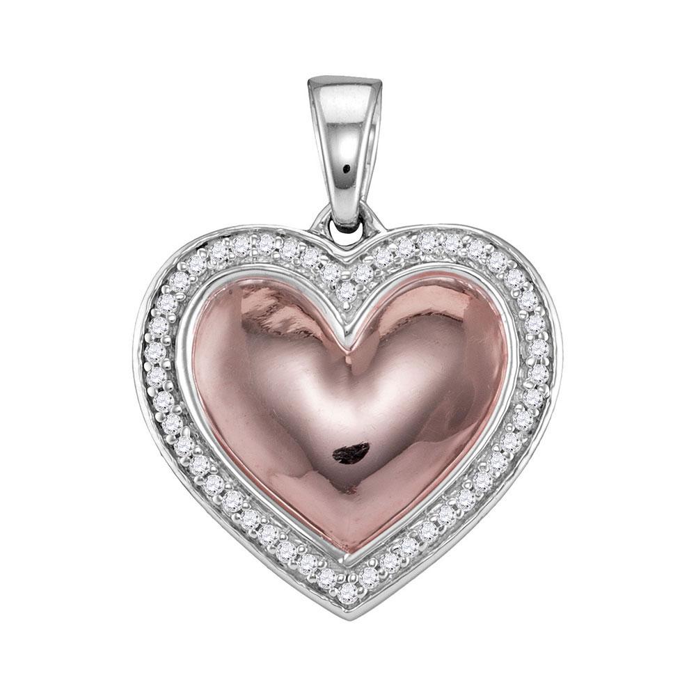 10kt White Rose-tone Gold Womens Round Diamond Framed Heart Pendant 1/5 Cttw