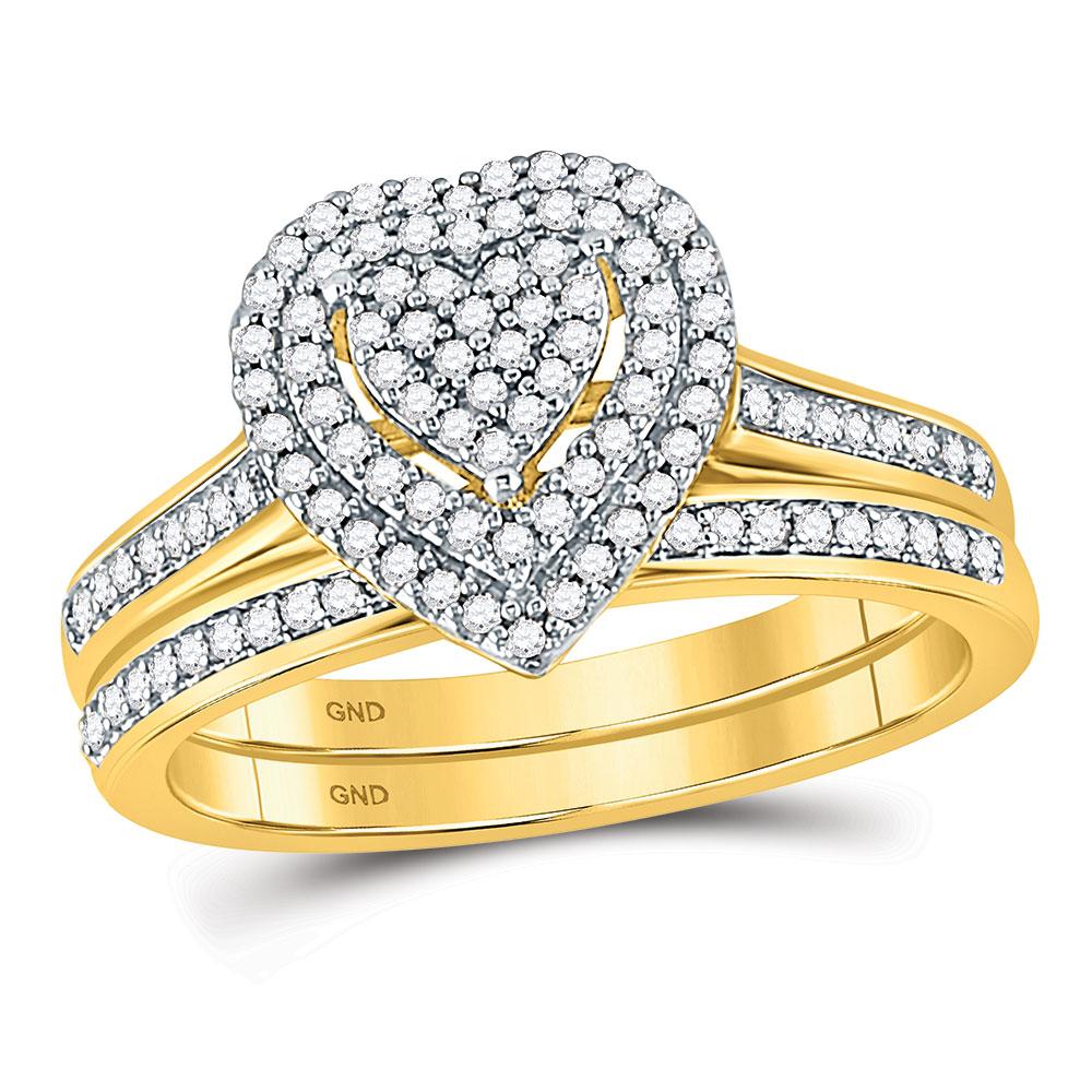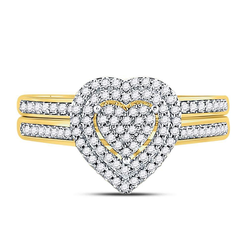 10kt Yellow Gold Diamond Heart Bridal Wedding Ring Band Set 1/3 Cttw