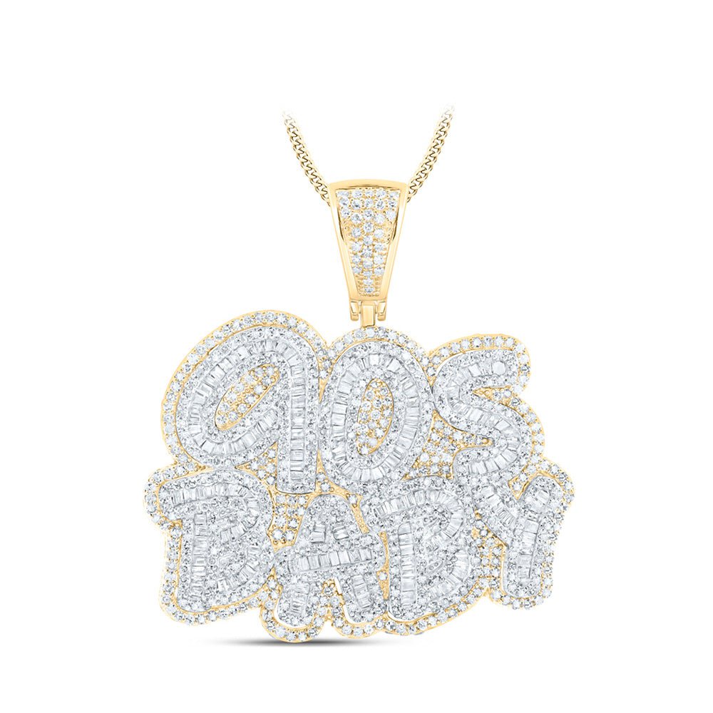 10kt Yellow Gold Mens Round Diamond 90s BABY Phrase Charm Pendant 3-3/8 Cttw