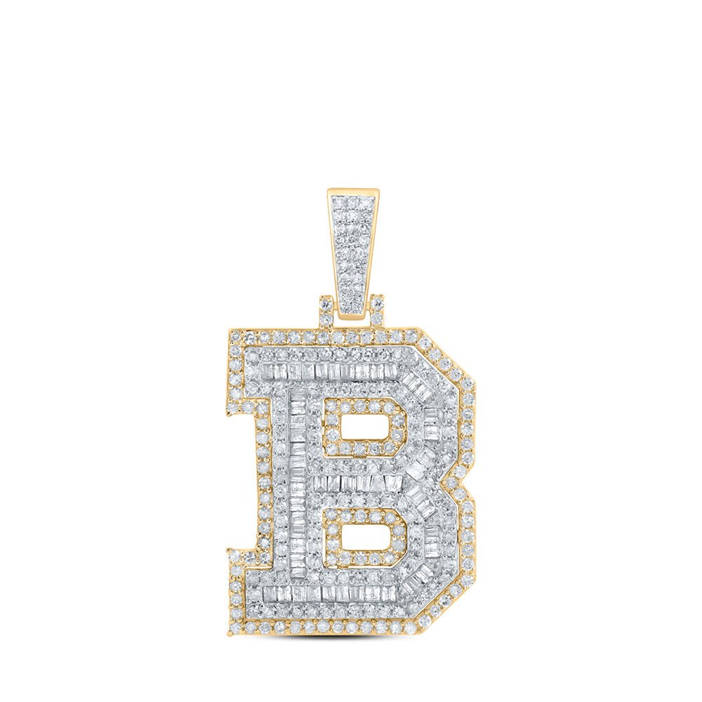 10kt Yellow Gold Mens Round Diamond B Initial Letter Charm Pendant 1 Cttw