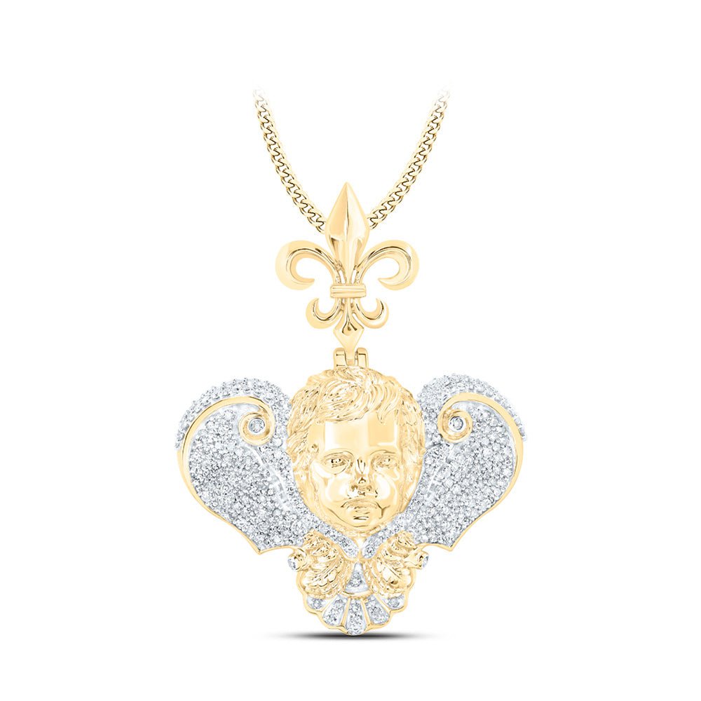 10kt Yellow Gold Mens Round Diamond Fleur-de-lis Face Charm Pendant 1-1/3 Cttw