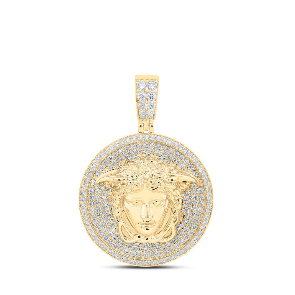 10kt Yellow Gold Mens Round Diamond Medusa Circle Charm Pendant 2-5/8 Cttw