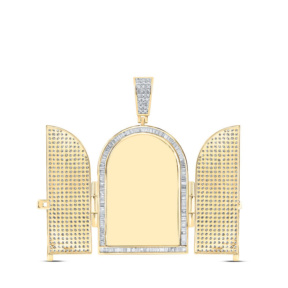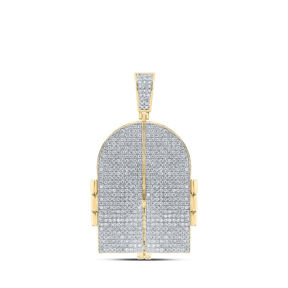 10kt Yellow Gold Mens Round Diamond Tomb Doors Memory Charm Pendant 7 Cttw