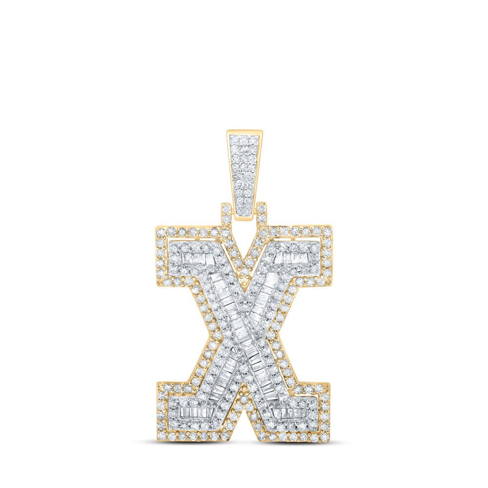 10kt Yellow Gold Mens Round Diamond X Initial Letter Charm Pendant 1 Cttw