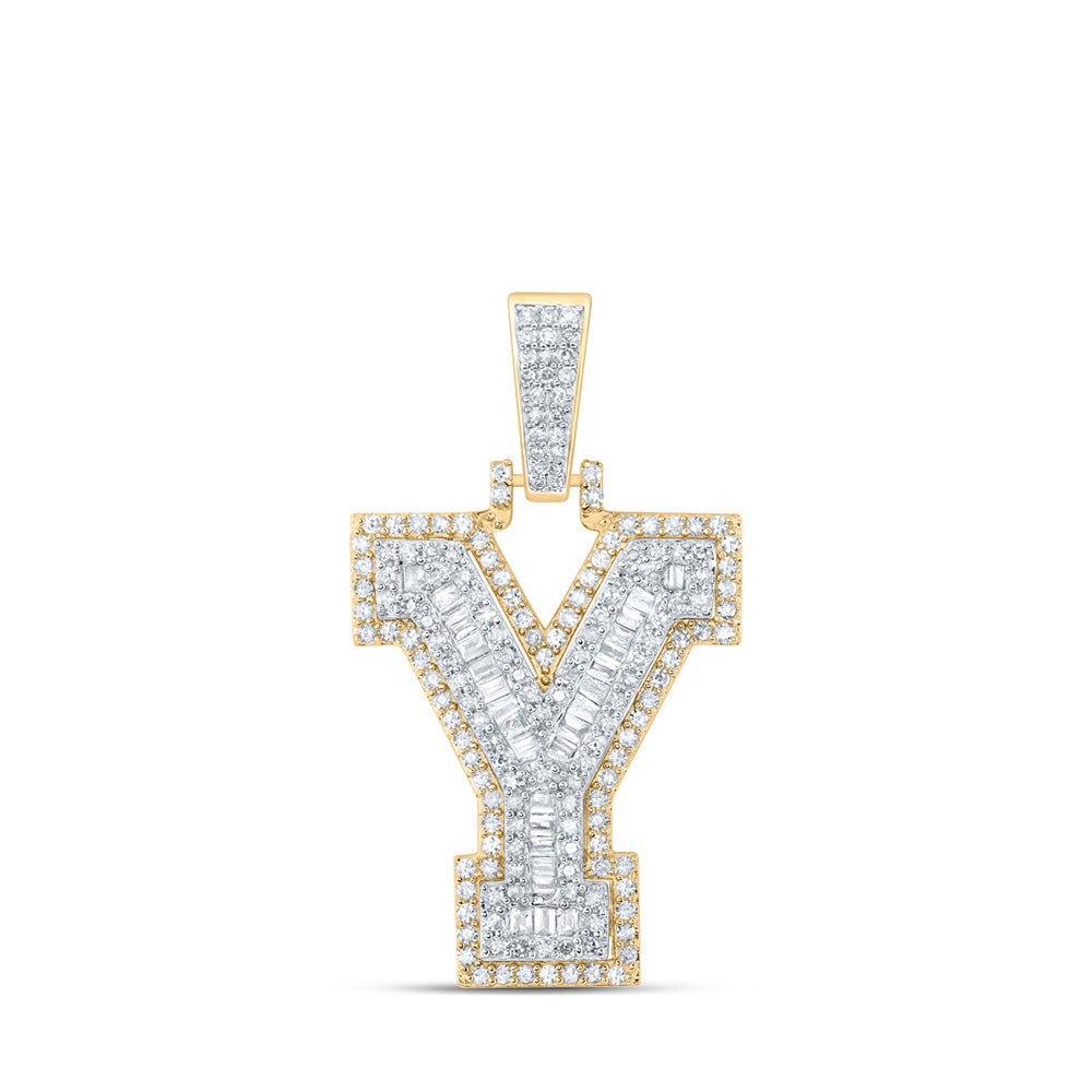 10kt Yellow Gold Mens Round Diamond Y Initial Letter Charm Pendant 5/8 Cttw