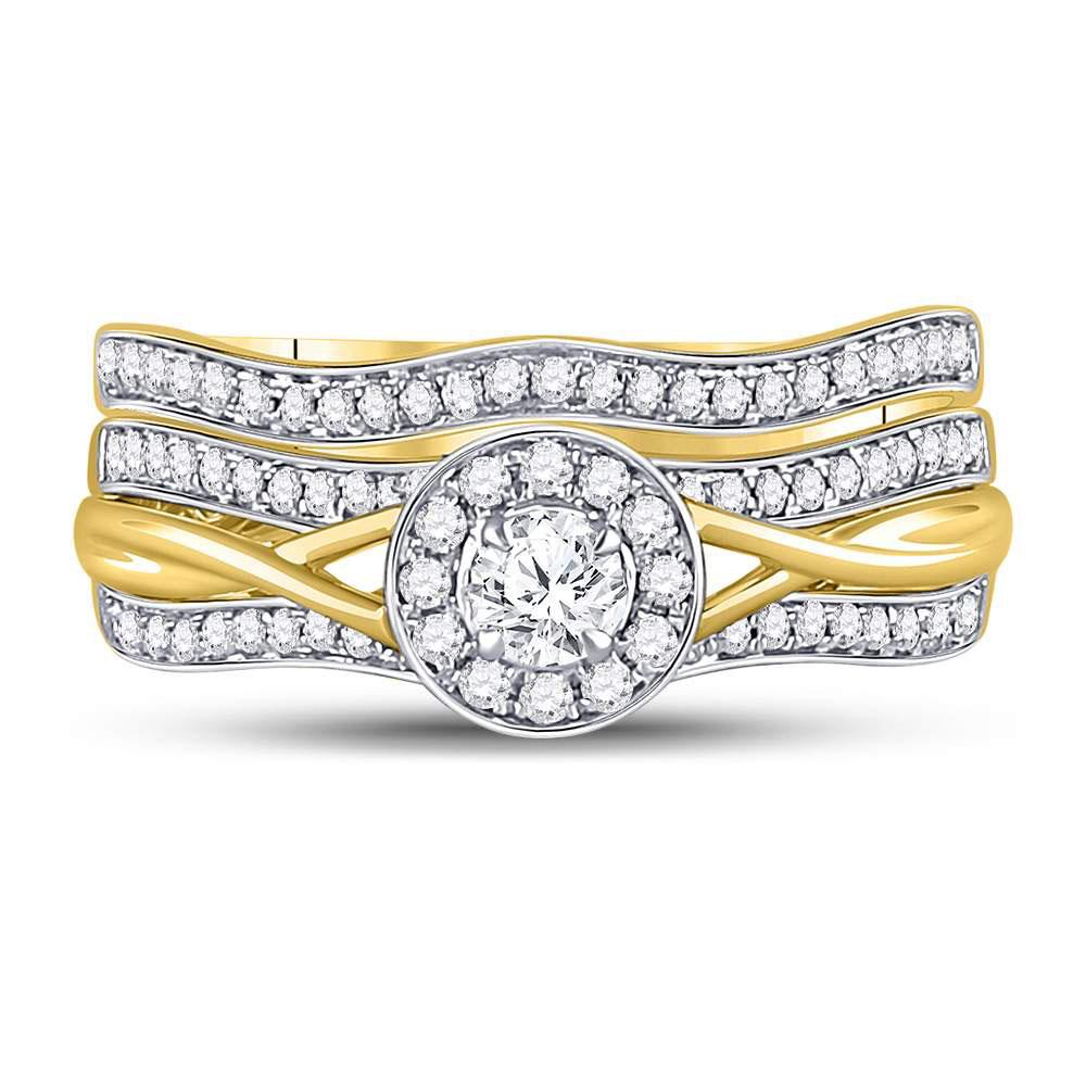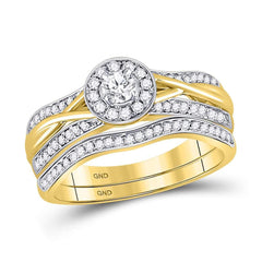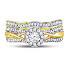 10kt Yellow Gold Round Diamond Bridal Wedding Ring Band Set 1/2 Cttw
