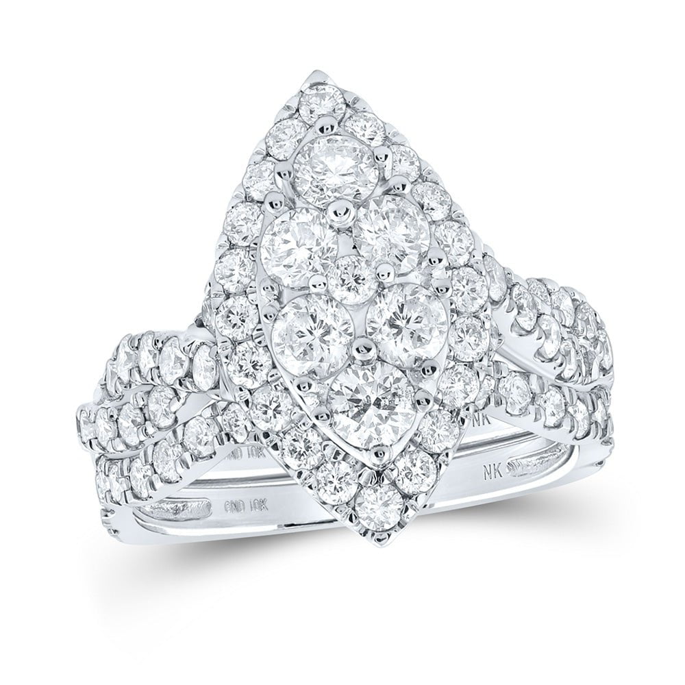 10kt Yellow Gold Round Diamond Marquise-shape Bridal Wedding Ring Band Set 2 Cttw