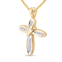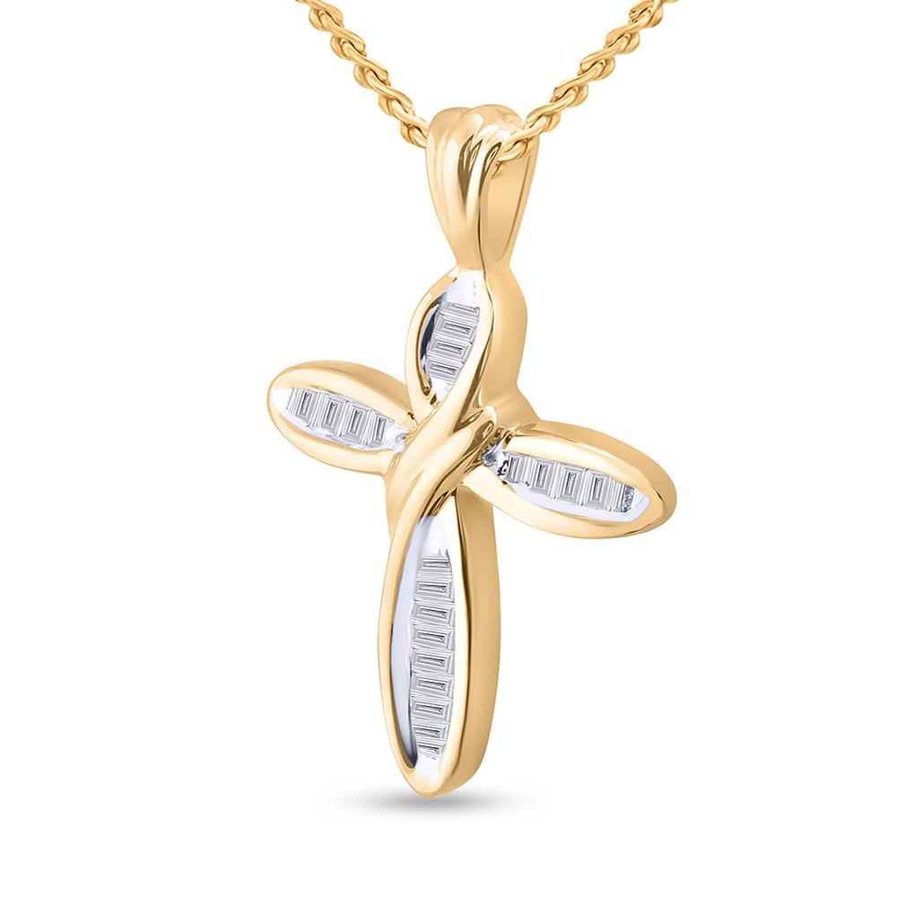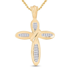 10kt Yellow Gold Womens Baguette Diamond Cross Pendant 1/4 Cttw