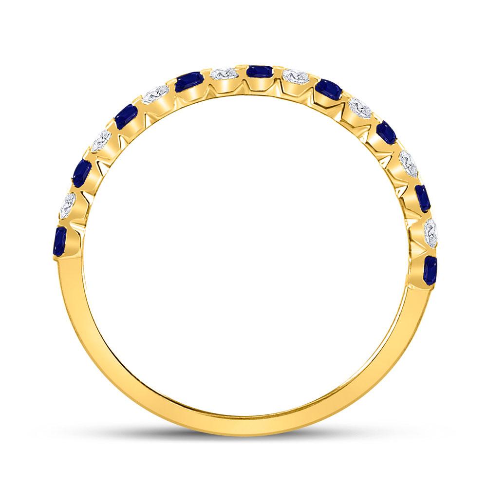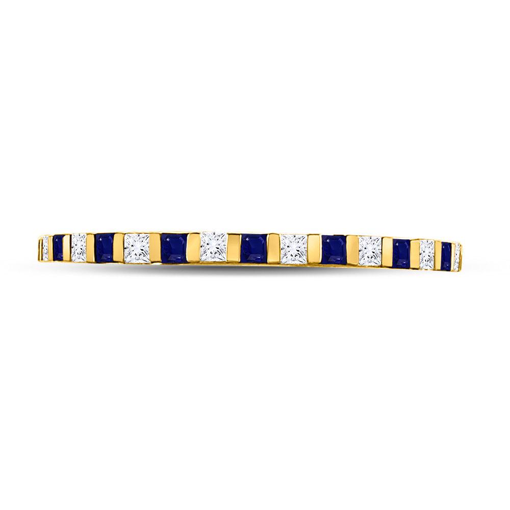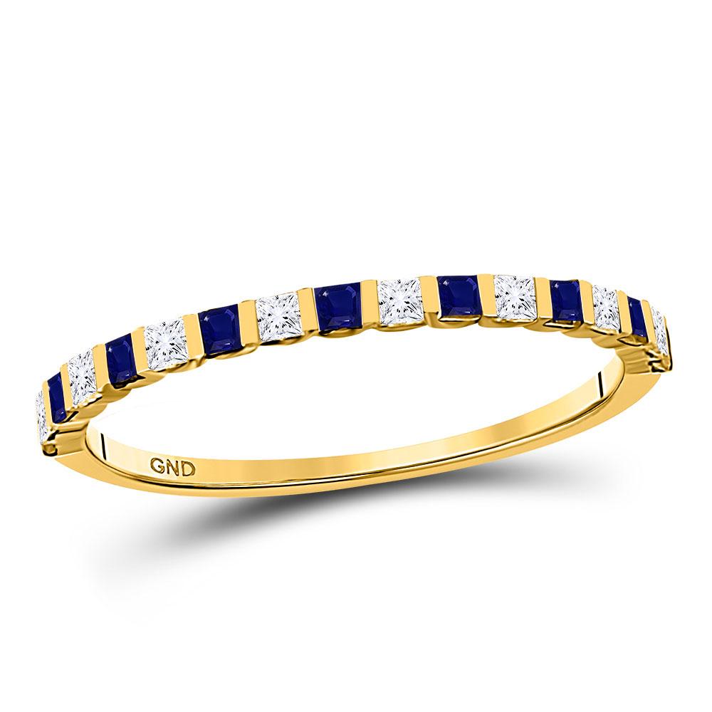 10kt Yellow Gold Womens Princess Blue Sapphire Diamond Stackable Band Ring 3/8 Cttw