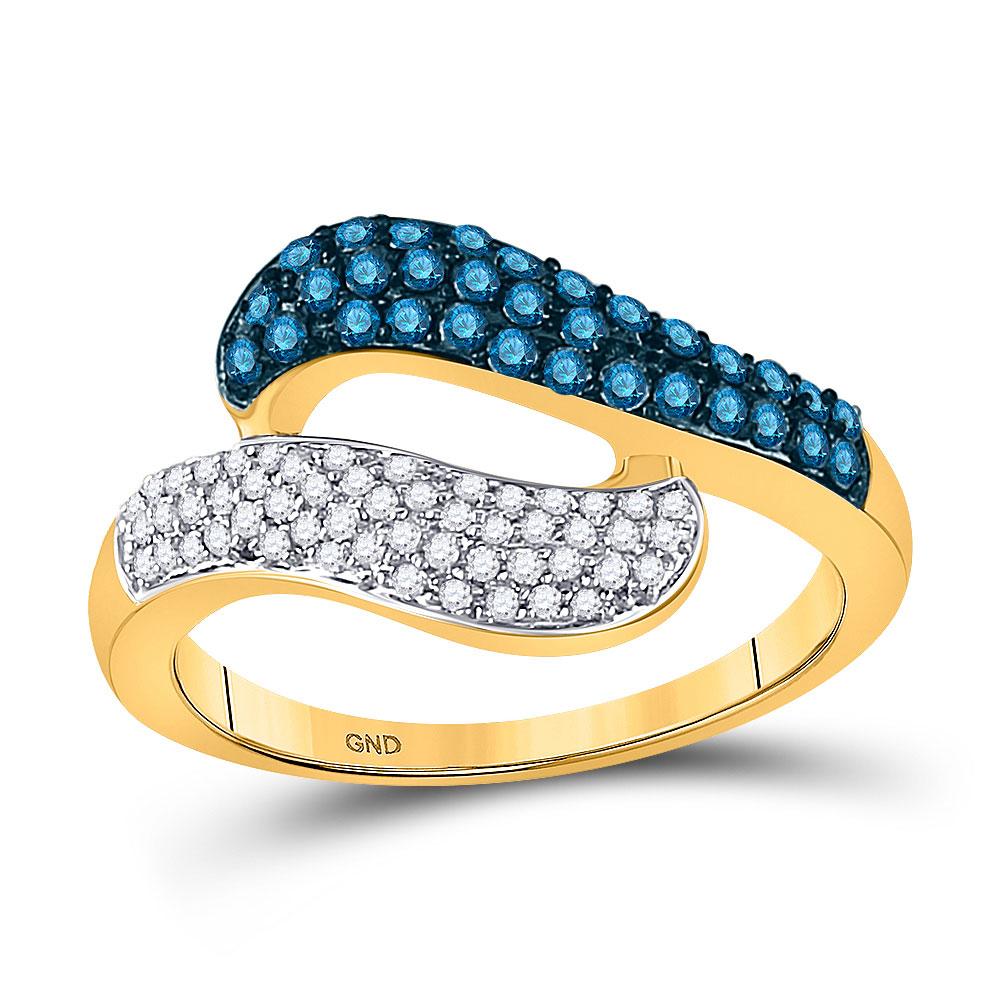 10kt Yellow Gold Womens Round Blue Color Enhanced Diamond Cocktail Ring 1/2 Cttw
