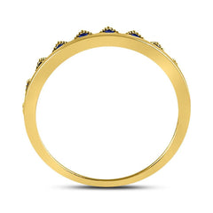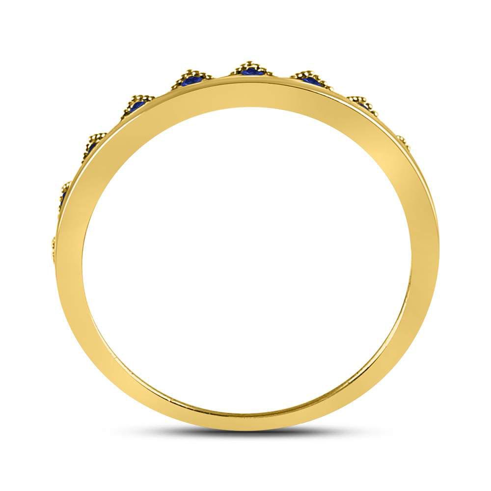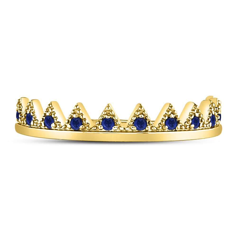 10kt Yellow Gold Womens Round Blue Sapphire Chevron Stackable Band Ring 1/10 Cttw