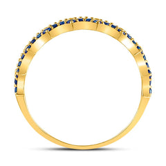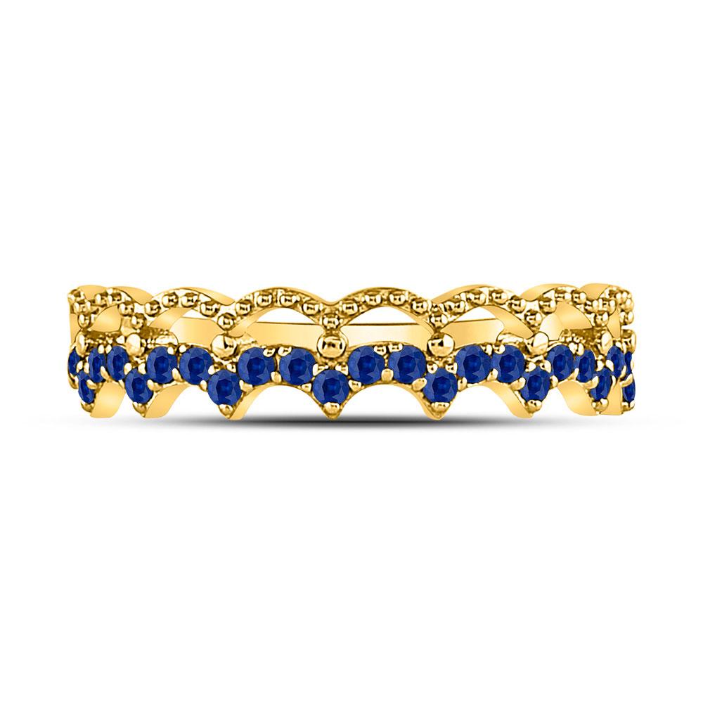 10kt Yellow Gold Womens Round Blue Sapphire Scalloped Stackable Band Ring 1/4 Cttw