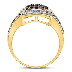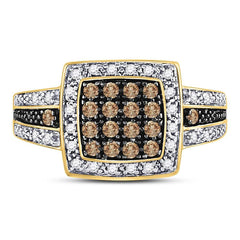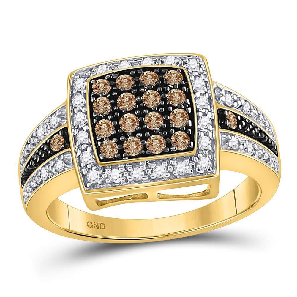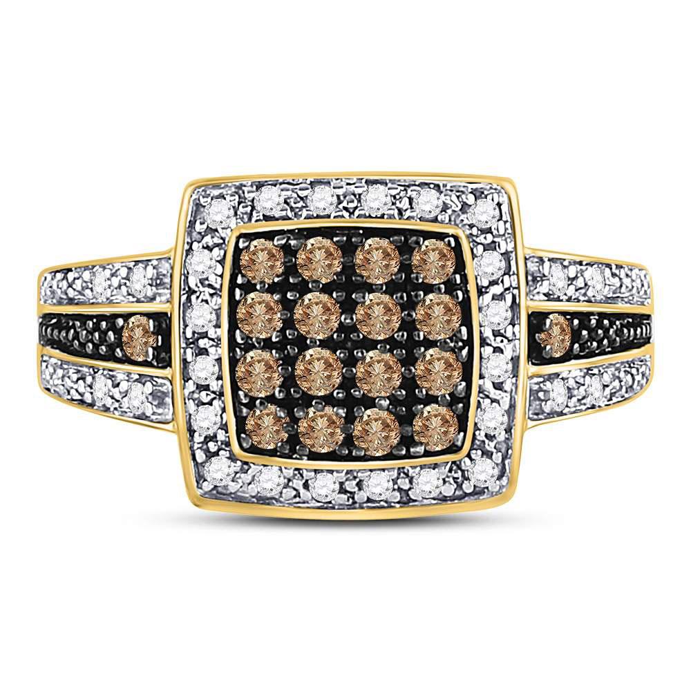 10kt Yellow Gold Womens Round Brown Diamond Square Cluster Ring 1/2 Cttw