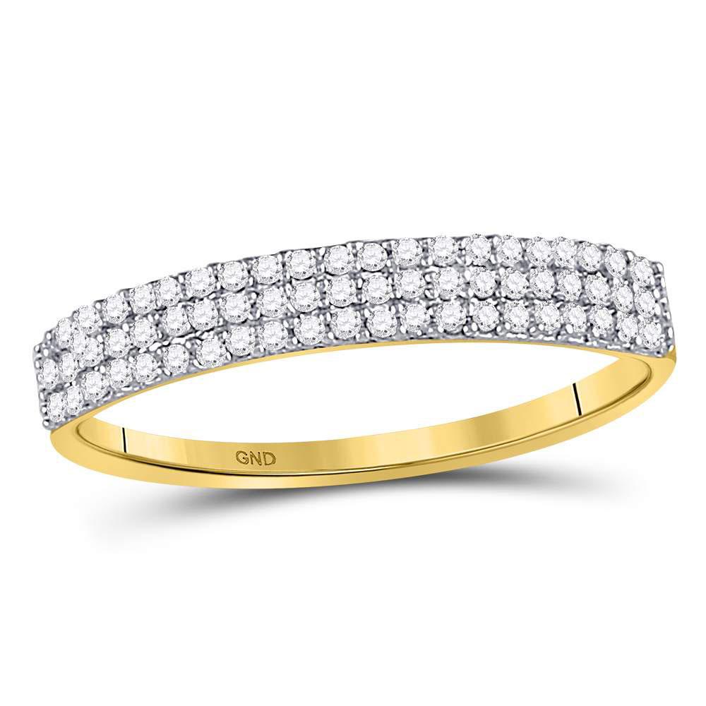 10kt Yellow Gold Womens Round Diamond 3-Row Anniversary Ring 1/5 Cttw