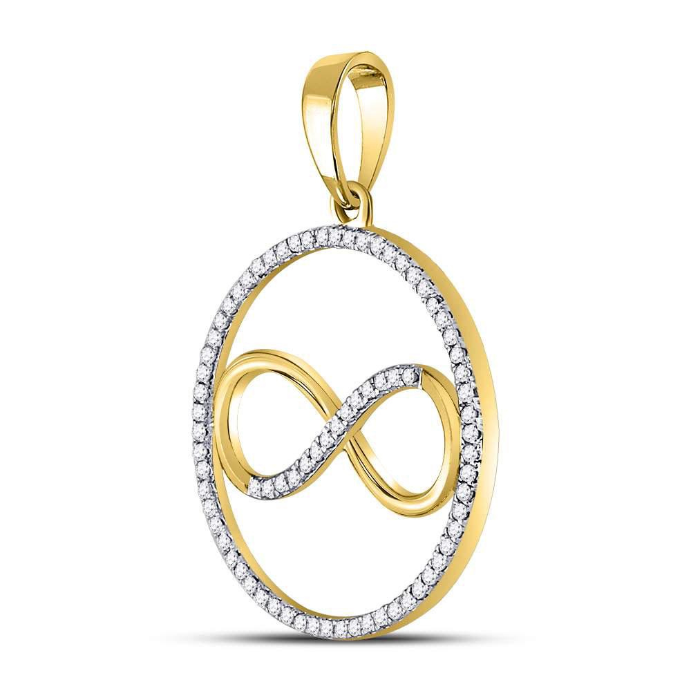 10kt Yellow Gold Womens Round Diamond Circle Infinity Pendant 1/3 Cttw
