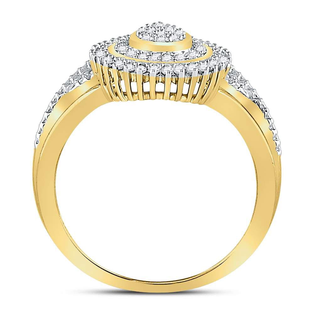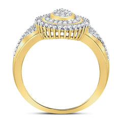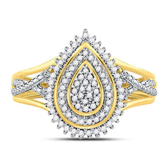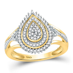 10kt Yellow Gold Womens Round Diamond Concentric Teardrop Cluster Ring 1/4 Cttw