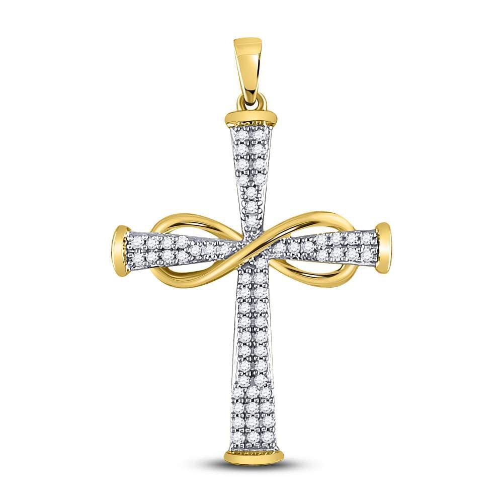 10kt Yellow Gold Womens Round Diamond Cross Infinity Pendant 1/5 Cttw