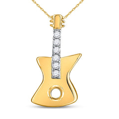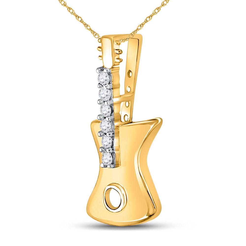 10kt Yellow Gold Womens Round Diamond Electric Guitar Music Instrument Pendant 1/20 Cttw
