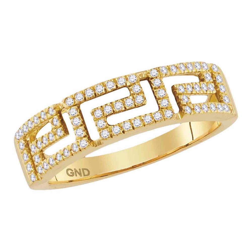 10kt Yellow Gold Womens Round Diamond Greek Key Band Ring 1/5 Cttw