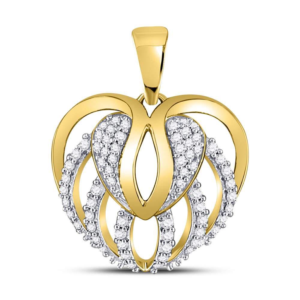 10kt Yellow Gold Womens Round Diamond Heart Open Strand Pendant 1/5 Cttw